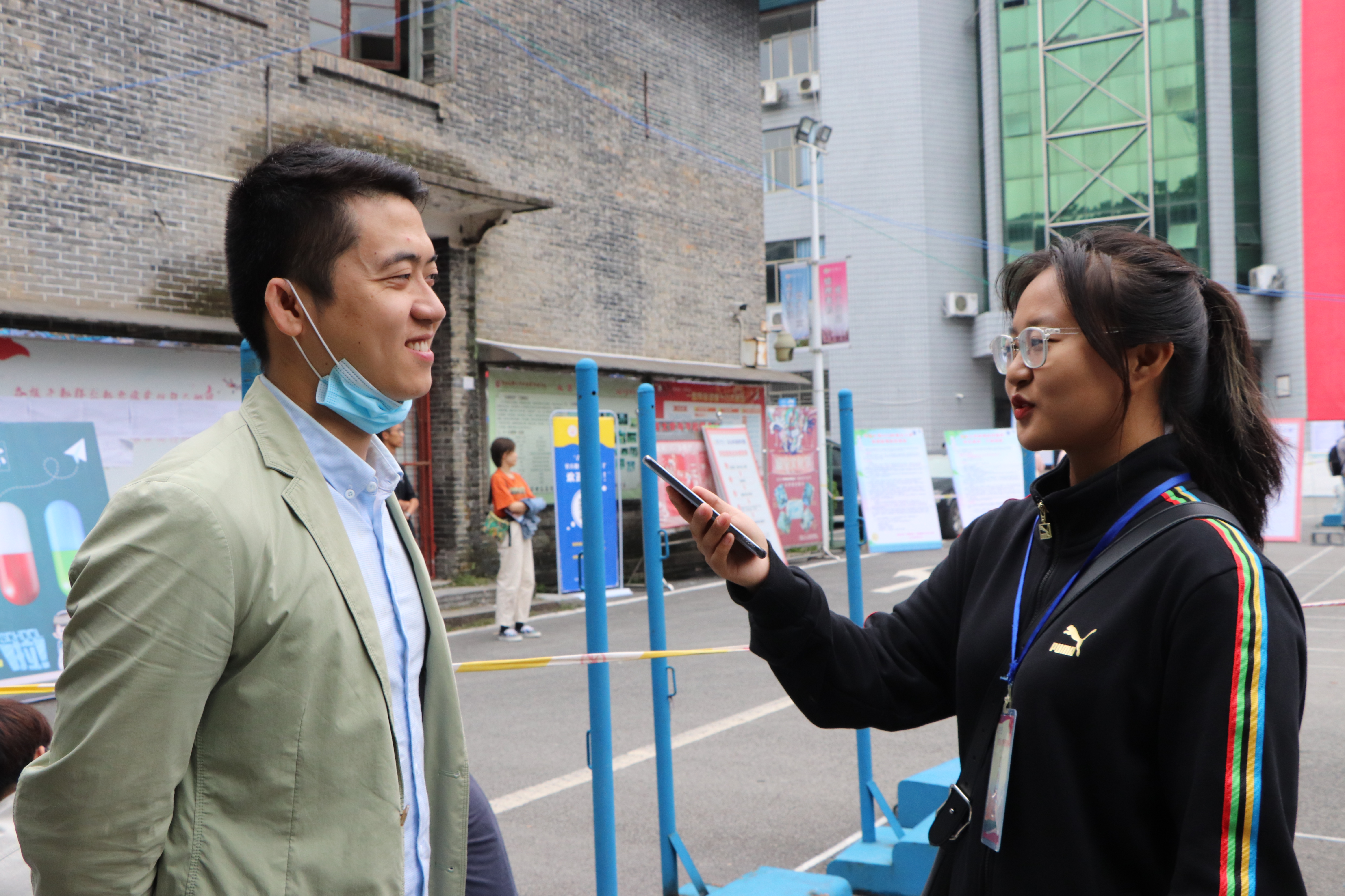 因为担心迎新工作人手不够,吕定红半夜带孩子去挂了急诊,她说孩子现在就是反复高烧,之前住院一周还未痊愈,尽管她心里焦急,今天也还是坚持来到了工作岗位。“学生也是我的孩子,他们总能带给我感动与惊喜。”吕定红的眼眶虽已经变红,但嘴角仍留笑意。