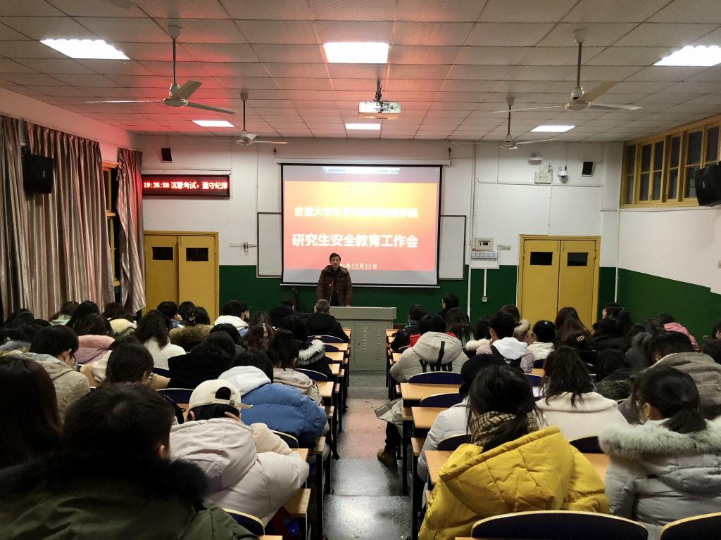 2020年12月15日星期二晚上19:00,文学院召开研究生安全教育工作会。参加本次会议的有院党委书记杨龙斌、院长罗惠缙、副院长彭广林、研究生秘书李昌礼及文学院全体研究生。本次会议由罗惠缙院长主持。
