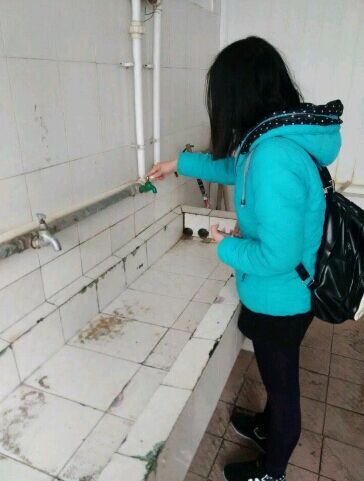 图为 学生在认真检查水龙头