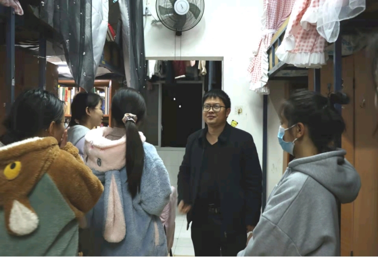 在查寝过程中,mk体育官网党委副书记、20级中师二班班导段武城提醒同学们不要使用大功率电器,注意宿舍用电安全,要防范安全隐患,强化安全意识。21级辅导员丁玉兰询问21级的新生们是否适应大学生活,叮嘱同学们合理安排学习计划,劳逸结合,学会平衡学习和生活,同时要及时开窗通风,保持空气流通。