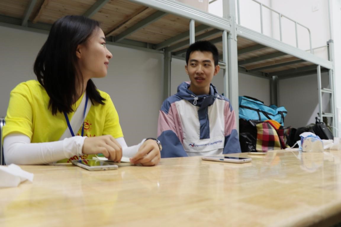 图为 王小丫采访新生韩昊澎(通讯员 芮维泽摄)