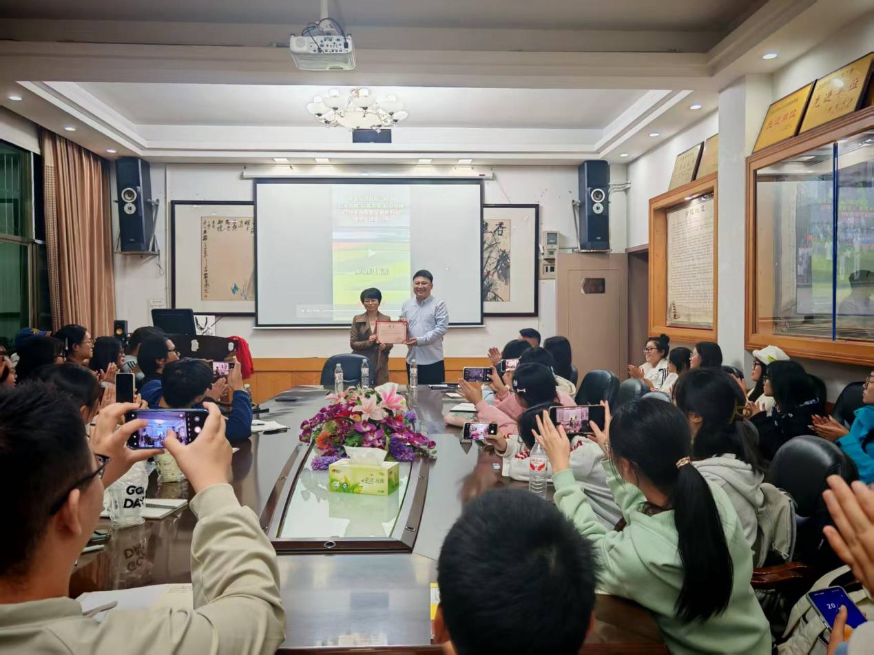 讲座现场,瞿建慧向董波颁发聘书,特聘这位湘西金牌主持人为mk体育官网文学与新媒体学院从文班行业导师。讲座尾声,从文班首届班主任刘泰然对董波老师的讲座进行了点评;最后瞿建慧做了总结,勉励从文班的同学学习董波老师这种情怀,做一个有热情、有理想,有自己的人生规划的青年,将自己的专业与社会的需要紧密结合,为社会做出自己的贡献。