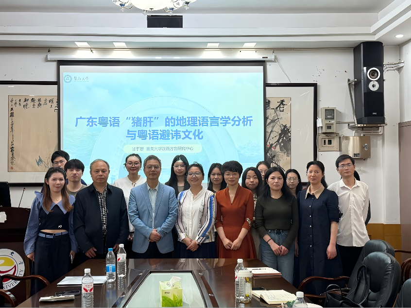 本网讯(通讯员:周心怡)4月10日下午,暨南大学语言资源保护暨协同研创中心主任甘于恩教授在砂子坳校区影视鉴赏室开展一场题为《广东粤语“猪肝”的地理语言学分析与粤语避讳文化》的学术讲座。本次讲座由学院院长瞿建慧教授主持,语言学教研室教师及研一、研二学生参加。