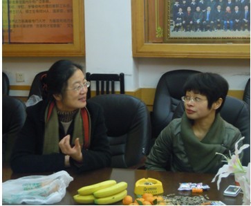 图为李启群老师与瞿建慧老师进行讨论