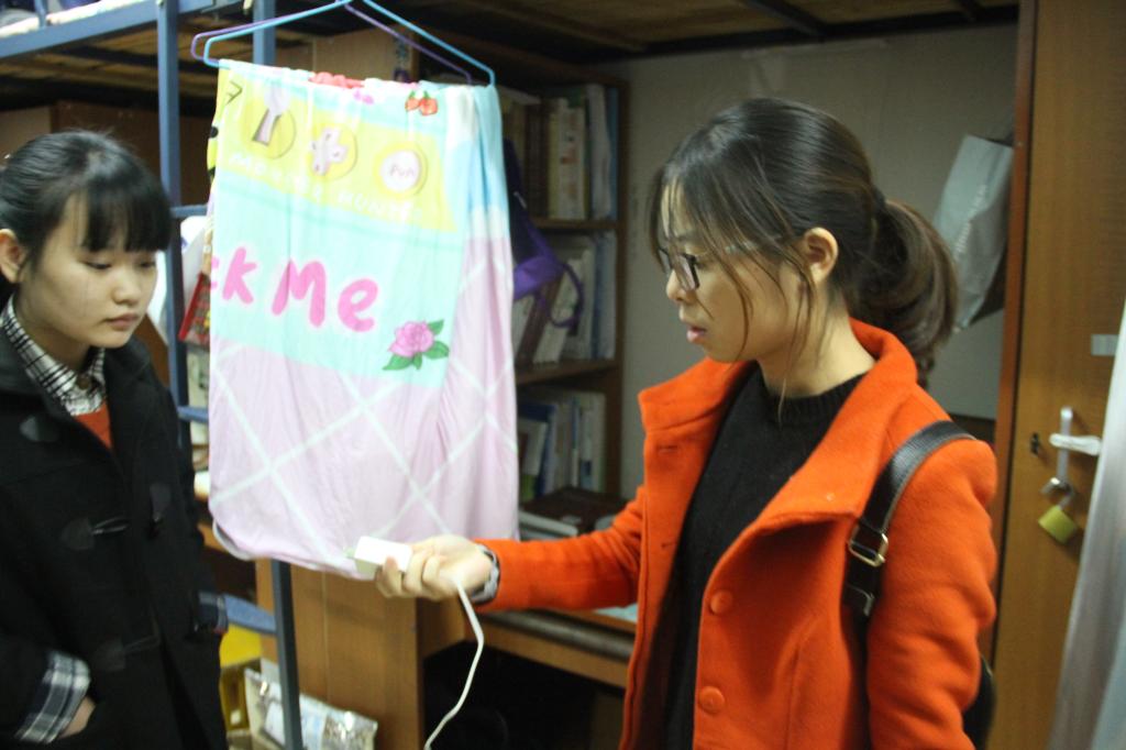 任倩提醒学生们要注意安全,尤其是注意用电安全,要做到门口警示标语说的那样:“防火防盗防骗,人走断电锁门”。任倩在指出同学们的用电安全问题的同时,也给同学们普及了一些安全用电的知识。她提醒学生们注意在手机等电器冲完电之后一定要记得及时拔掉充电器和插板不要插过多的插头。