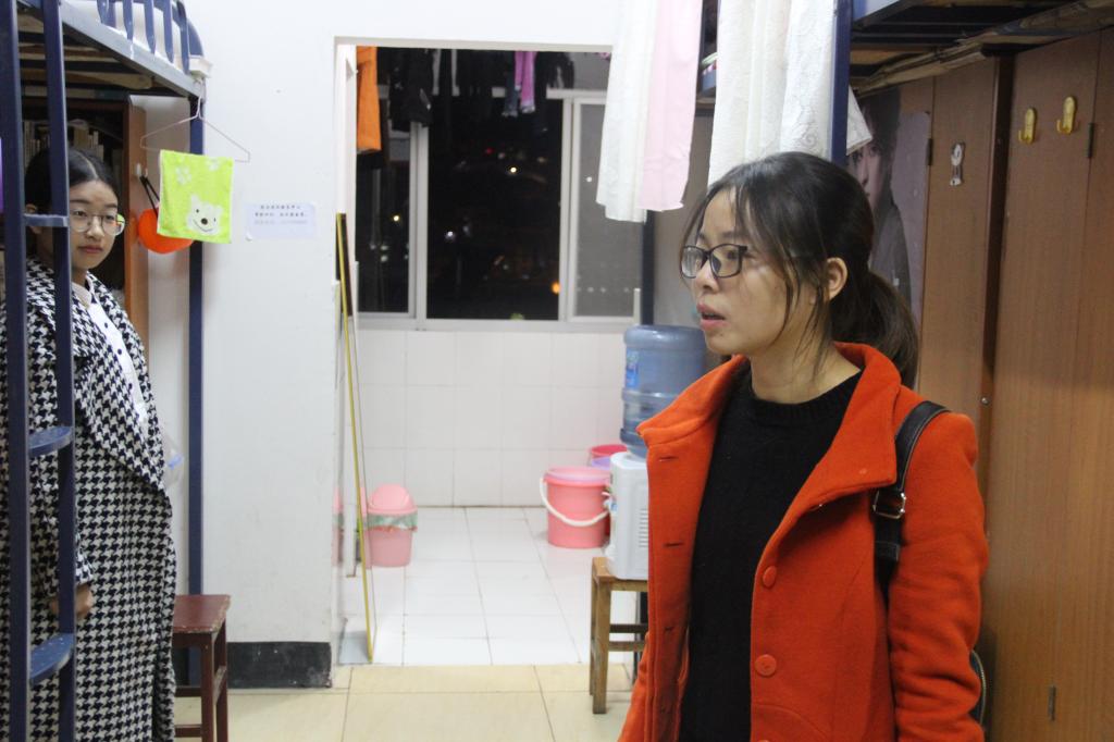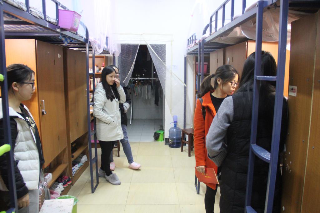 本网讯(学生记者 王雪倩)为提高学生们的安全意识,排除寝室内部的安全隐患。11月23日晚,mk体育官网2016级辅导员任倩、2014级辅导员鲁明新、辅导员冯佰伟来到砂子坳校区11栋学生宿舍进行安全隐患排查以及提醒同学们注意用电安全。