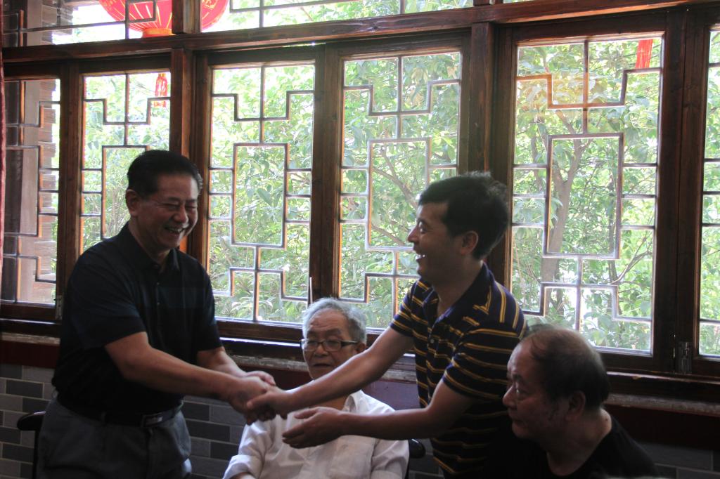 图为 杨龙斌与离退休教师交谈 张意摄 |