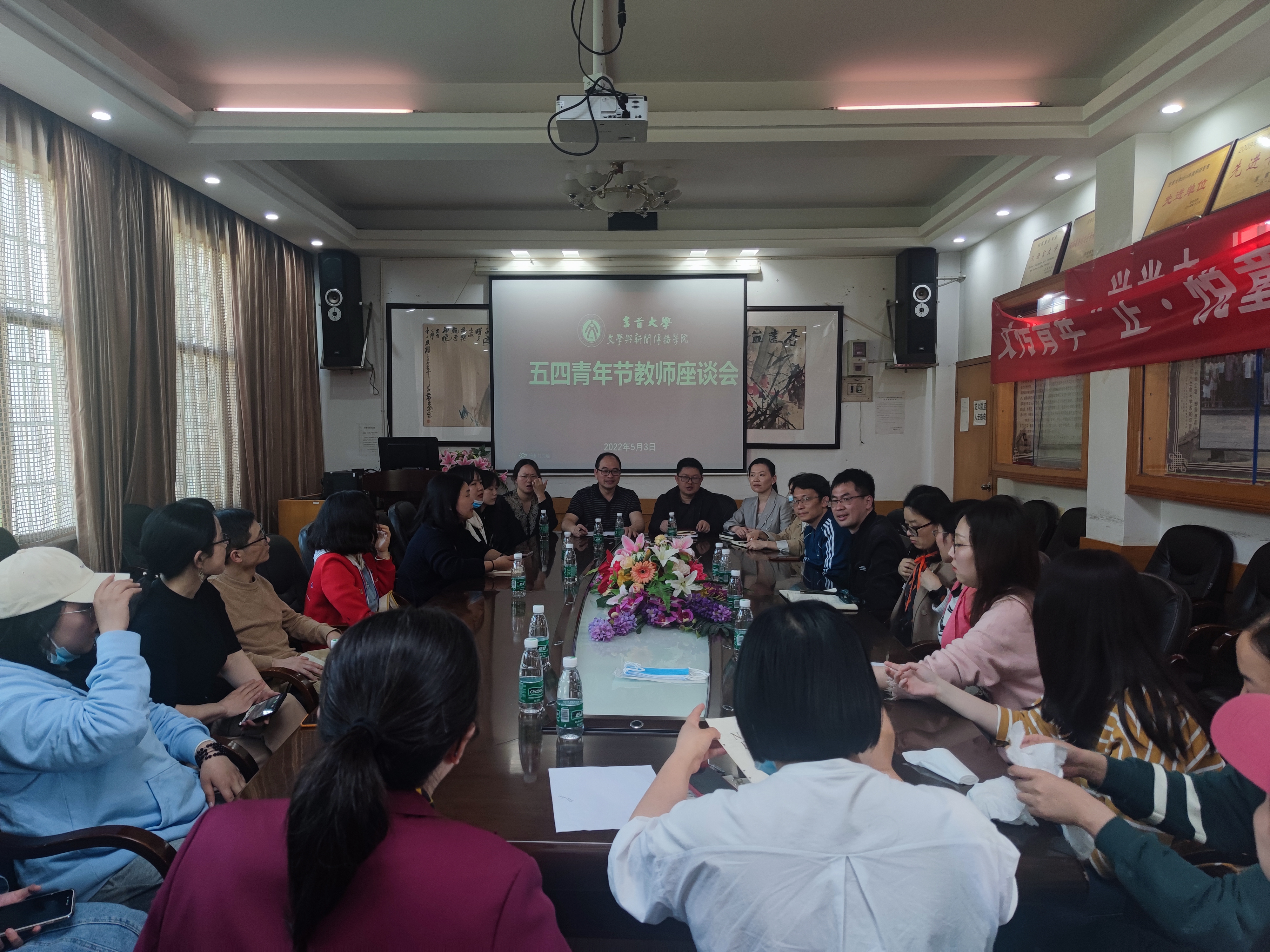 本网讯(通讯员 吴诗明)为进一步加强青年教师队伍建设、促进青年教师的专业发展,更好地倾听青年教师的心声和感悟,了解青年教师的需求和愿望,在五四青年节来临之际,5月3日下午,mk体育官网于影视鉴赏室召开了五四青年节教师座谈会。副院长彭广林、院党委副书记段武城、副院长罗琼、工会常务副主席盛竞凌,以及全院青年教师参加会议。会议由段武城主持。