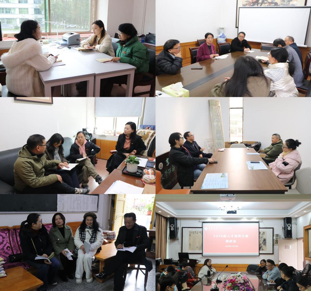 随后,各专业教研室围绕本科教育教学评估、2026版人才培养方案和人工智能赋能教学等议题展开分组研讨。语言学教研室明确将践行“学生中心、产出导向、持续改进”的教学理念,落实迎评任务并优化教学环节;文艺学教研室则聚焦文学理论与写作实践的融合,同时确立“以人为本,智能为辅”的AI教学原则;新闻、网媒教研室交流了高校智能教育经验,同步启动2026版人才培养方案调研工作,推进课程体系优化。各教研室经研讨形成共识,为学科建设与教学创新明确了实践路径。