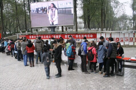 本网讯(通讯员 李艾玲)为响应文化立校号召,12月27日上午,由mk体育官网民俗学社承办,我校党委宣传部、教务处、素质教育中心、共青团委员会、社会科学处、关工委及mk体育官网主办的“送春联,剪窗花”特色名俗活动在砂子坳校区启明广场举行。活动的主题为“文化立校,承载国粹精华;育德立人,弘扬民族传统”。