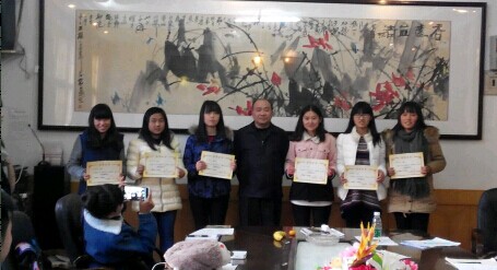 表彰环节,14级学通社成员张欣、陈慧宁、刘会敏等六名通讯员获得了“优秀通讯员”的荣誉,李端生为其颁发证书并和获奖学生合影留念。