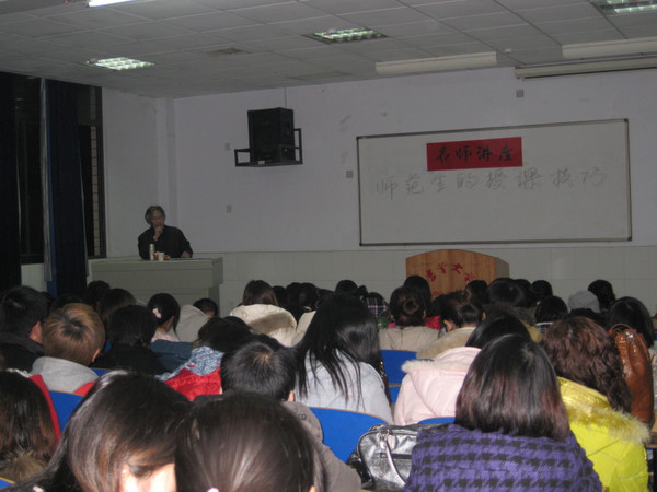 本网讯(通讯员 龙浩)12月3日晚,由2007级中师二班承办的“关于师范生的授课技巧”讲座在总理楼60222教室举行。讲座由唐生周教授主讲,李兰老师主持。
