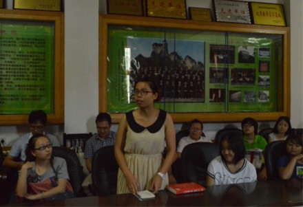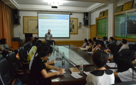 组图为 《光明日报》评论员兼CCTV2特约评论员周龙老师在做讲座