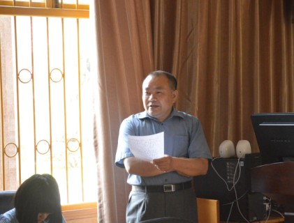 图为 2011级新闻班导师李端生教授在主持本次讲座