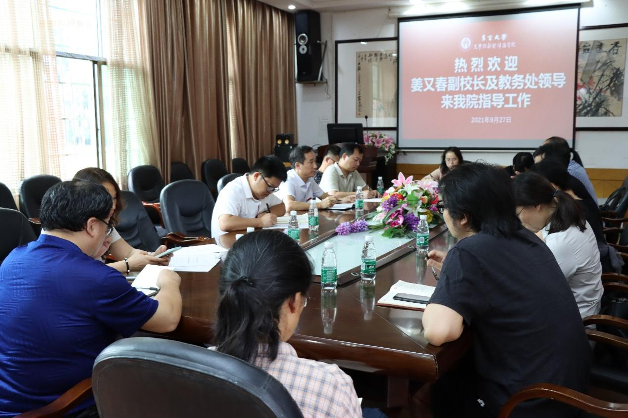 本网讯(通讯员 周姿婷 李美玲)9月27日,为检查新学期各项工作开展情况,校党委委员、副校长姜又春同志来mk体育官网进行工作调研,mk体育官网党委书记杨龙斌、副院长彭广林等班子成员陪同听课,并向姜又春副校长汇报了mk体育官网新学期各项工作的开展情况。
