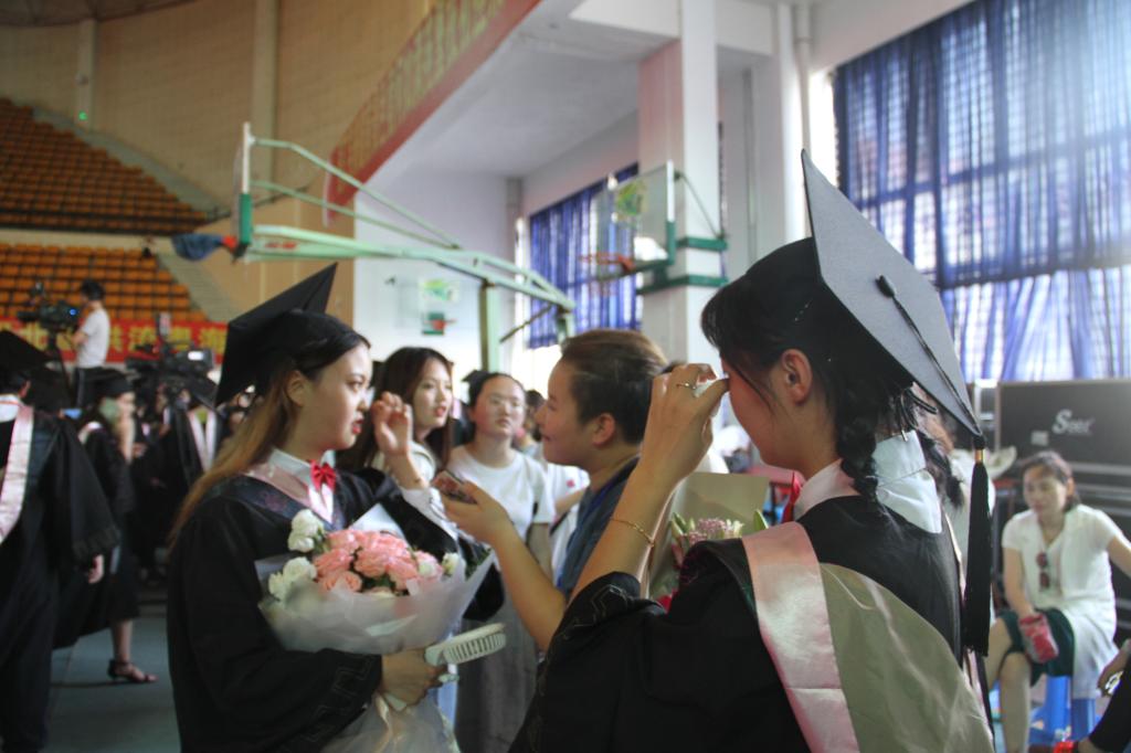 我校砂子坳校区体育馆中心舞台后区人潮涌动,站满了来观礼的家长和未毕业的吉大学子,为的只是更近距离感受毕业典礼。